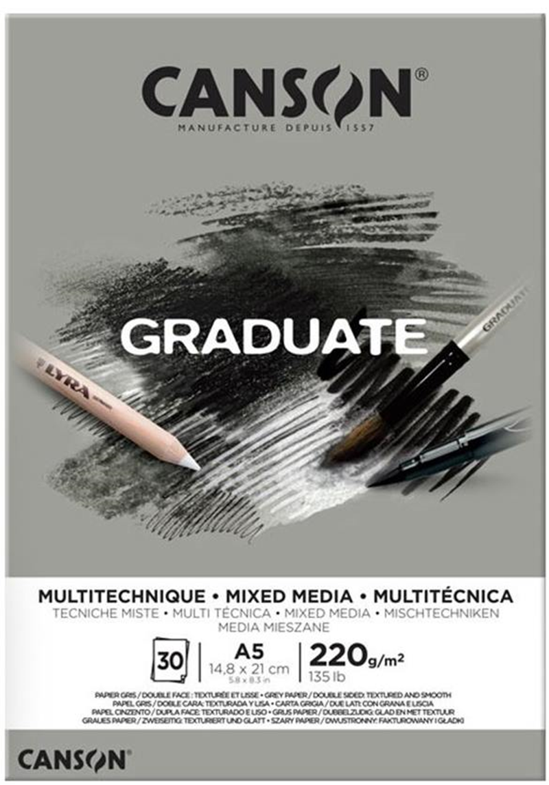 CANSON ÇİZİM BLOĞU GRADUATE MIX MEDIA GREY A5 220 GR 30 SF 400110370