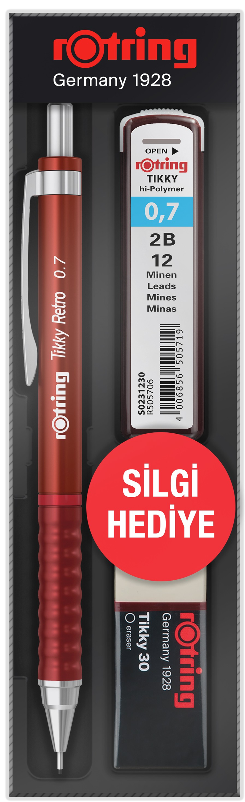 ROTRİNG VERSATİL KALEM TIKKY RETRO OKUL SETİ 0.7 KIRMIZI - RO-RK07-KIRMIZI